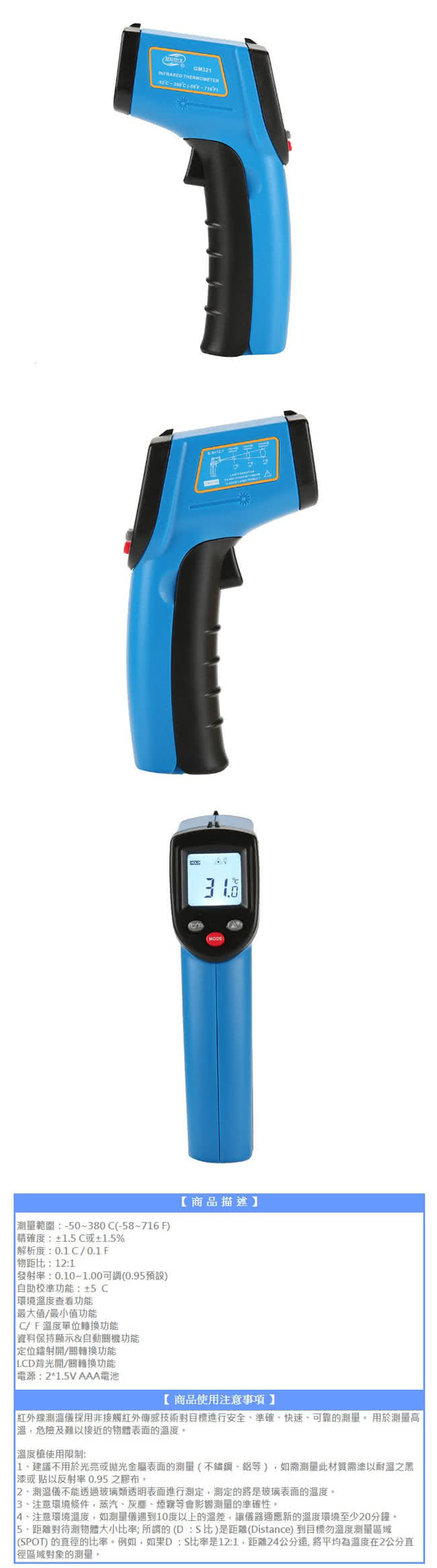 以下是【BENETECH】GM321 紅外線測溫槍 紅外線溫度計 溫度槍 電子溫度計商品資訊: